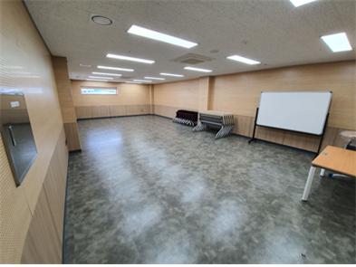 - ▶구비시설 : 화이트보드, 단상(강연대), 책상, 의자, 바닥매트(※음향, 영상시설 없음)